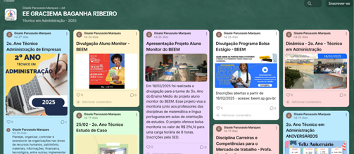 A Escola Estadual EE Graciema Baganha Ribeiro está realizando práticas de desenvolvimento interpessoal com os alunos do 2° Ano do Ensino Técnico em Administração, complementando as matérias da grade curricular existentes no curso.