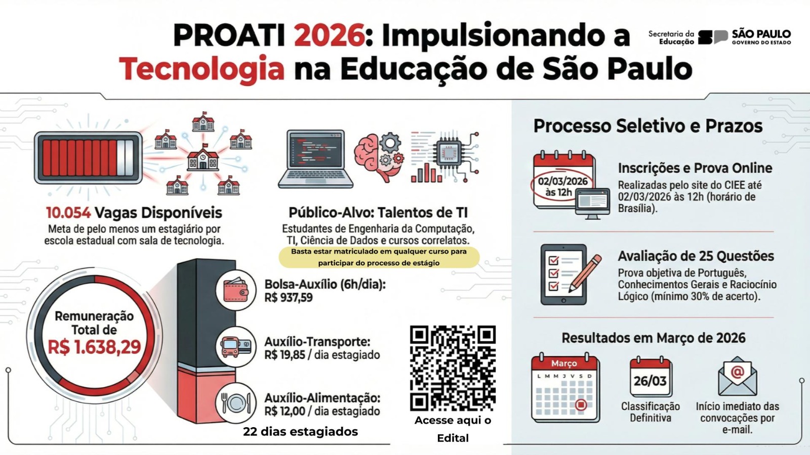 ESTÁGIO Secretaria da Educação do Governo do Estado de São PauloSEDUC/SP 09-01-2510 de fevereiro de 2026 Enviar por e-mail LEIA TAMBÉM EDITAL BANCO DE TALENTOSINTÉRPRETE/INTELOCUTOR DE LIBRAS CADASTRO EMERGENCIAL PARA CONTRATAÇÃO TEMPORÁRIA DE DOCENTES ENSINO FUNDAMENTAL E MÉDIO – 001/2026 Atribuição de Classes e Aulas para o ano letivo de 2026 – 06/03/2026 – Editais disponíveis à partir de 05/03/2026, no período da tarde! Atribuição de Classes e Aulas do Dia 27/02/2026
